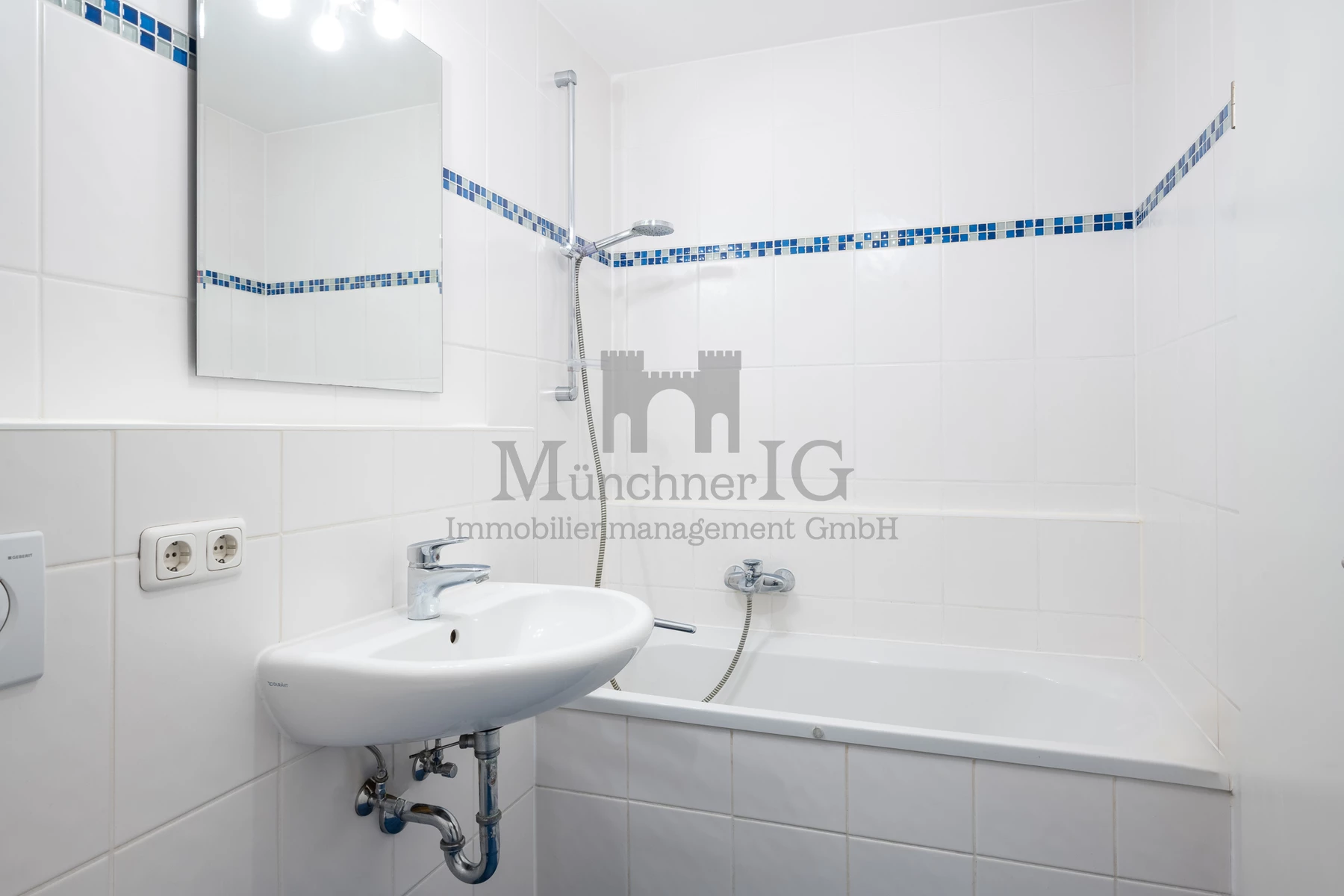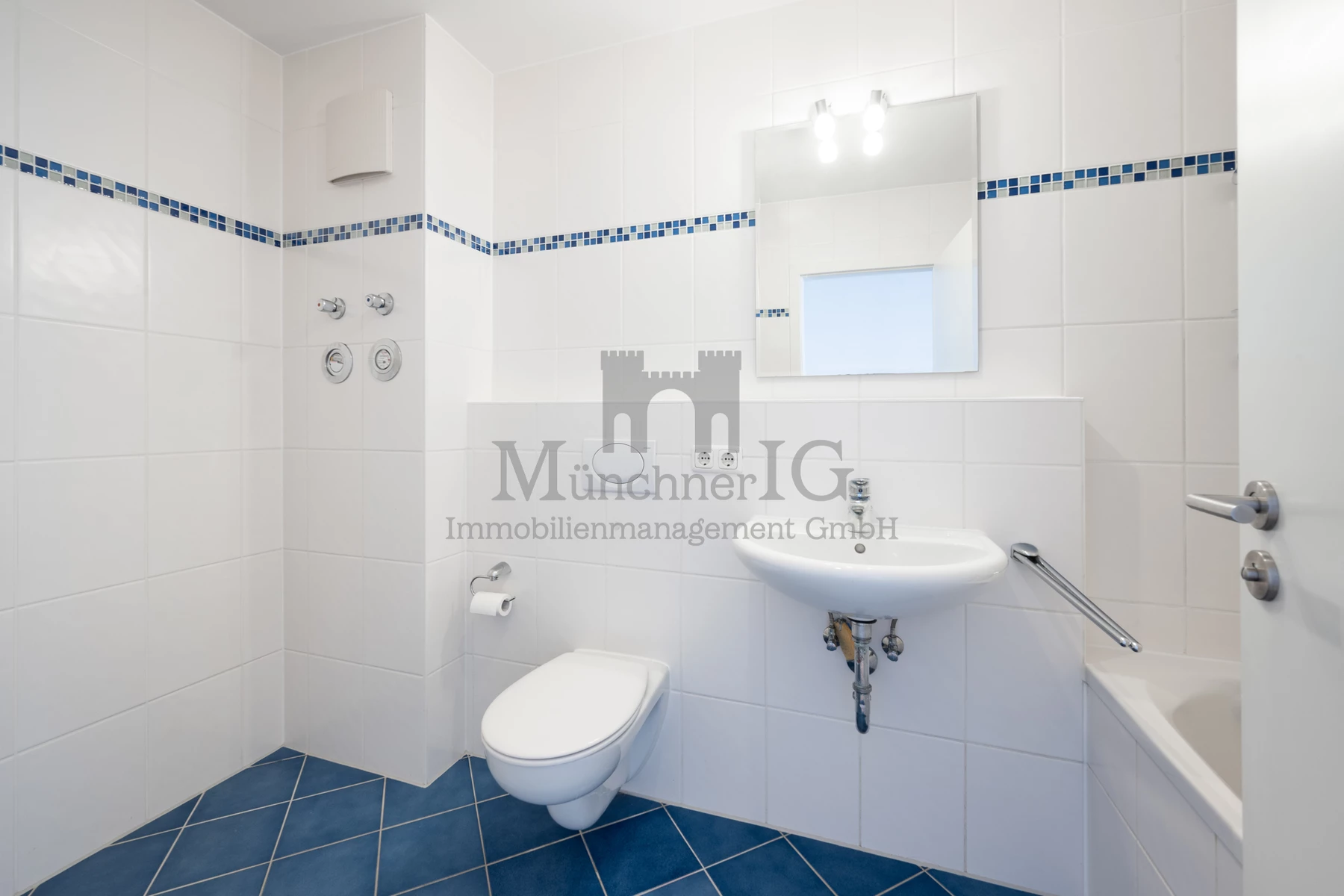 + Badezimmer ausgestattet mit Badewanne, Waschbecken, WC